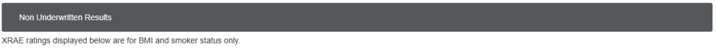 If Smoker History has been considered as part of a Non‑Underwritten quote, this will be clearly indicated within the quote results, as shown below. The comparison report will also show any ex-Smoker considerations.
